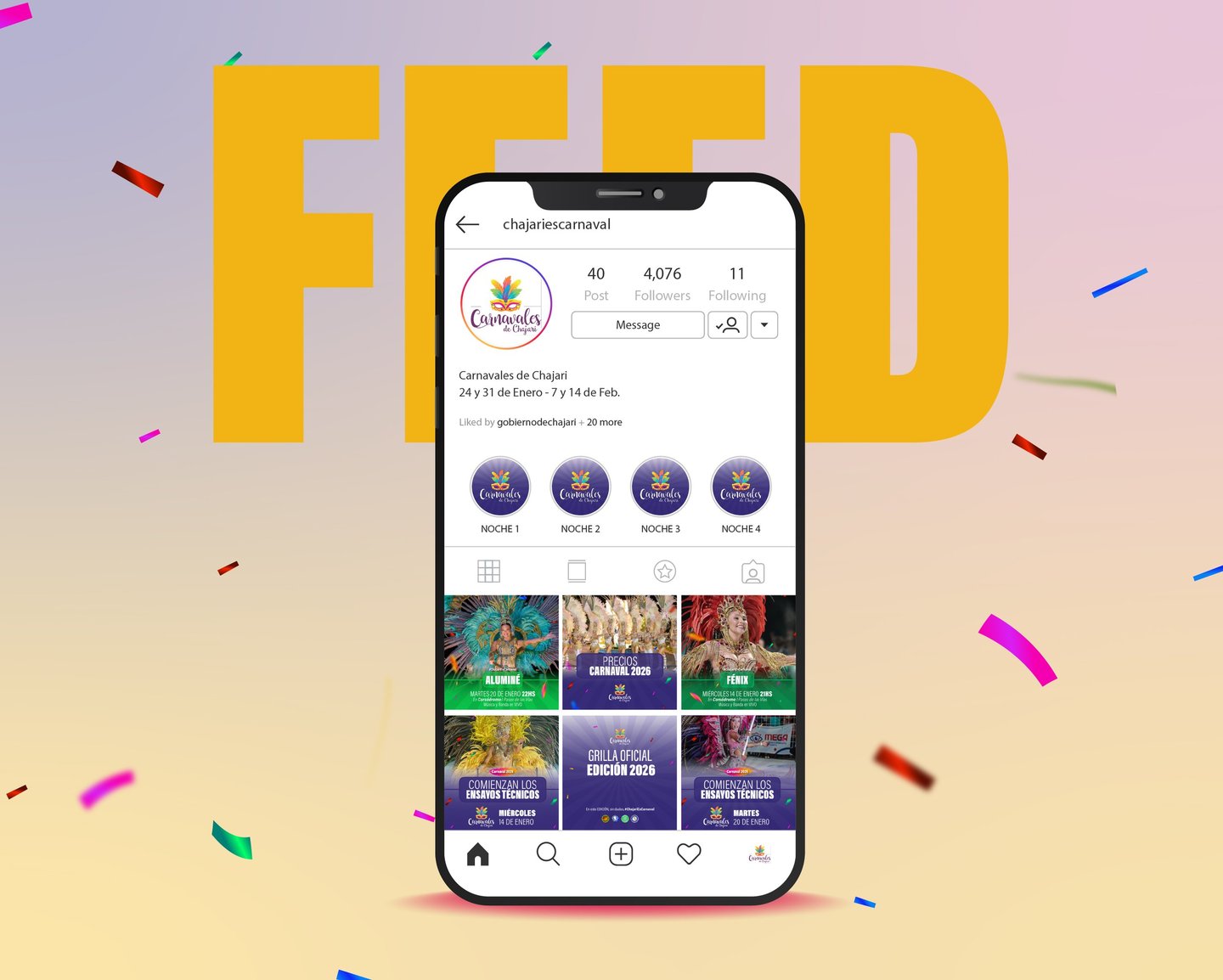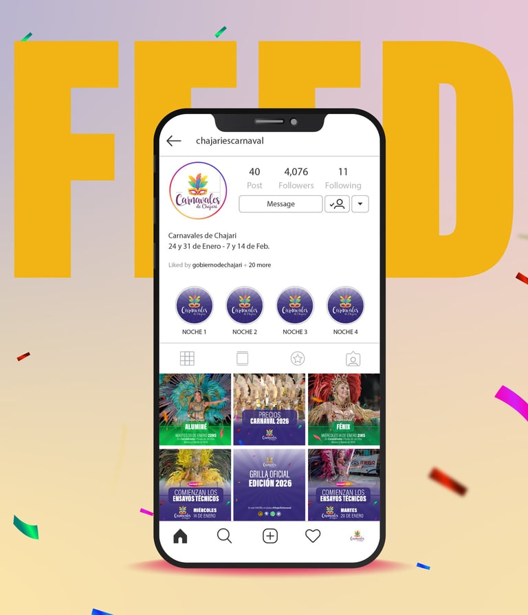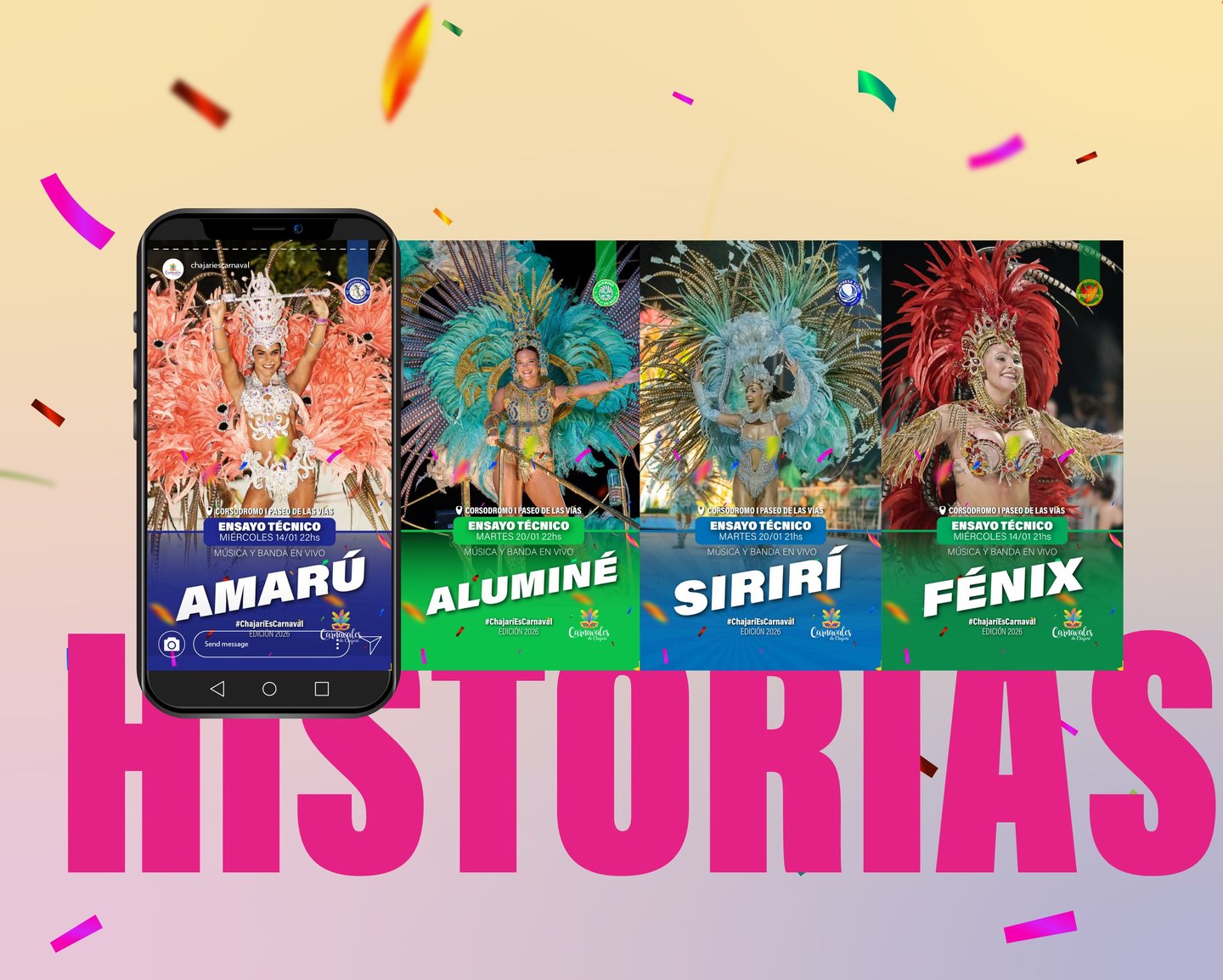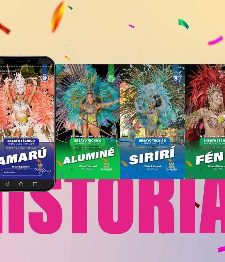 Campaña gráfica para "Carnavales de Chajarí", consistió en el armado de placas para Instagram, tanto posteos como historias.